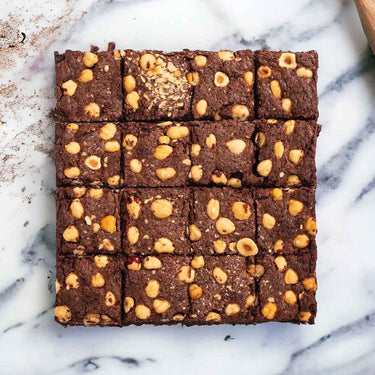 Our Chocolate and Hazelnut Brownies are the perfect indulgence for anyone looking for a delicious dessert. Made with the finest quality chocolate and hazelnuts, these brownies are sure to satisfy any sweet tooth. Enjoy these rich and decadent treats delivered straight to your door. Made with free range organic eggs and Belgian chocolate.
