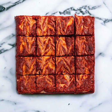 Indulge in our delectable Red Velvet Brownies - freshly baked and delivered right to your door! Enjoy the classic combination of red velvet and cream cheese, all in one decadent treat. Made with free range organic eggs and Belgian chocolate.
