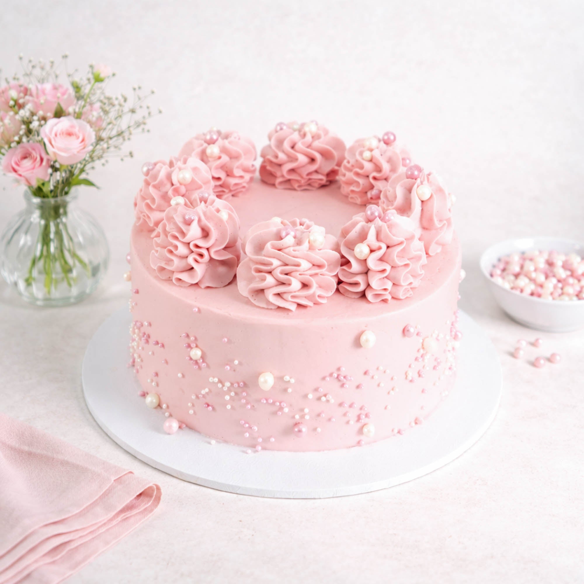 A mini version of our light and fresh Rose and Elderflower Cake. Made with alternating layers of fluffy, vanilla sponge, drizzled with elderflower and a silky rose-infused buttercream. Topped off with sprinkles and buttercream swirls. Made with free-range organic eggs.
