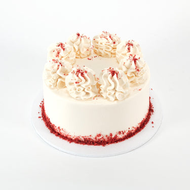 A mini version of our luxurious red velvet cake, made with alternating layers of moist, fluffy red velvet sponge and silky cream cheese buttercream. Topped off with a red velvet crumb and buttercream ruffles. Made with free range organic eggs.