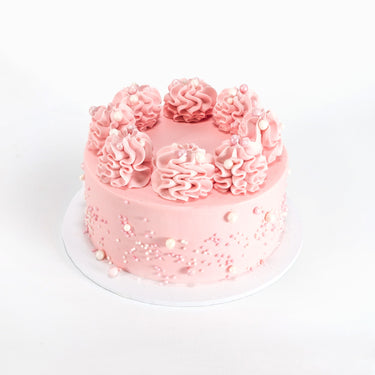 A mini version of our light and fresh Rose and Elderflower Cake. Made with alternating layers of fluffy, vanilla sponge, drizzled with elderflower and a silky rose-infused buttercream. Topped off with sprinkles and buttercream swirls. Made with free-range organic eggs.