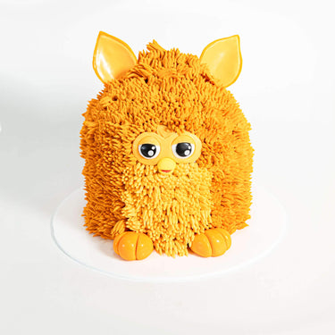 Our retro Furby Cake with buttercream 'fluff' and fondant face, feet and ears. With alternating layers of light fluffy sponge and silky buttercream, lots of flavours to choose from, the cake will look the same no matter which one you go for.