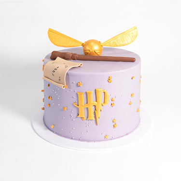 Perfect for any Harry Potter fan, made with alternating layers of light, fluffy sponge, and silky vanilla buttercream. Decorated with with a fondant Snitch, scroll and wand. Made with free range organic eggs.