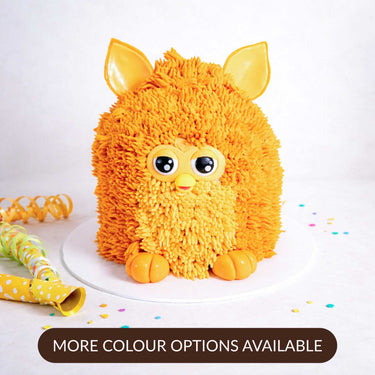 Rediscover childhood charm with our meticulously crafted Furby Cake by Harry Batten. This cake showcases a delicate buttercream 'fluff' finish, enhanced with fondant details on the face, feet, and ears to faithfully recreate the beloved Furby character. Within, alternating layers of light sponge and velvety buttercream offer a harmonious blend of textures, available in an array of flavours tailored to your preference. Regardless of the flavour chosen, the cake maintains its endearing appearance.