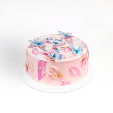 A mini version of our Pretty Pink Butterfly Cake covered with rippled buttercream, wafer paper butterflies and sprinkles. With alternating layers of light fluffy sponge and silky buttercream, lots of flavours to choose from, the cake will look the same no matter which one you go for.