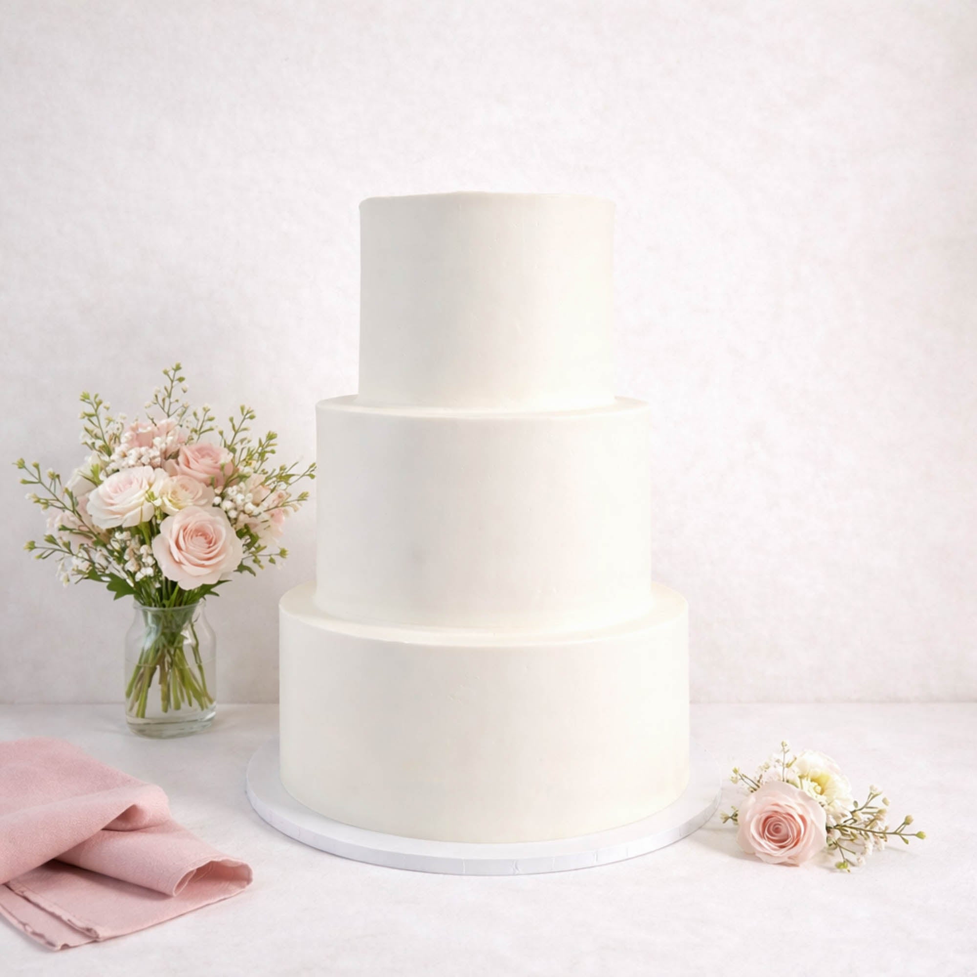 This classic Wedding Cake - Free Delivery is covered in our signature Italian buttercream, finished to a smooth texture that provides the perfect base for flowers and foliage. We hand-make all our Wedding Cake - Free Deliverys to order in our Sussex bakery, with a wide range of flavours and fillings available. For this cake, we offer personalisation in the form of foliage or flowers in a range of colours and styles – from formal and elegant to wildflowers or foliage.