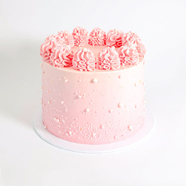 Our light and fresh Rose and Elderflower Cake. Made with alternating layers of fluffy, vanilla sponge, drizzled with elderflower and a silky rose infused buttercream. Topped off sprinkles and buttercream swirls. Made with free range organic eggs.