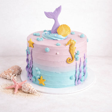 A 'Free From' verson of our mythical Mermaide Cake with alternating layers of light fluffy sponge and silky buttercream. Featuring a big, handmade fondant mermaid, shells and seahorse. Lots of flavours to choose from, the cake will look the same no matter which one you go for.