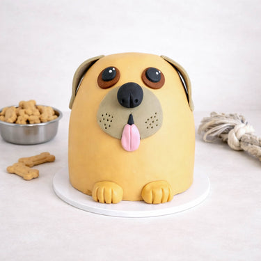 Our dog lovers Puppy Cake, made with alternating layers of light, fluffy sponge, and silky buttercream. Covered with fondant to look like a cutsie wootsie doggy.